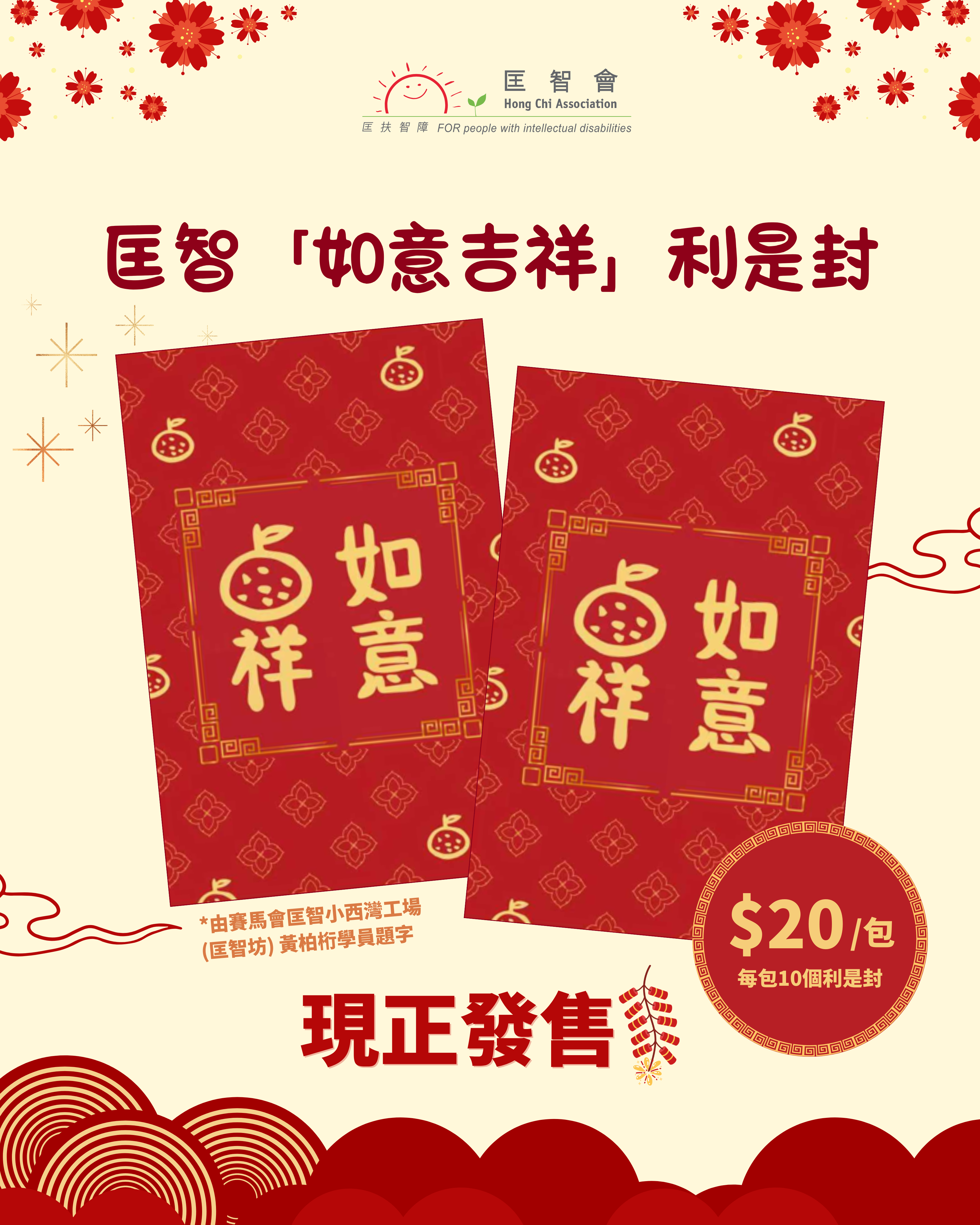 This Lunar New Year, Hong Chi Association is also offering laisee envelops with the handwritten calligraphy “good fortune and auspiciousness” (如意吉祥) by trainee Wong Pak Haang. Each pack costs HK$20 and includes 10 laisee envelops, not only bringing festive joy and blessings to the new year, also helping raise more funds for the campaign.