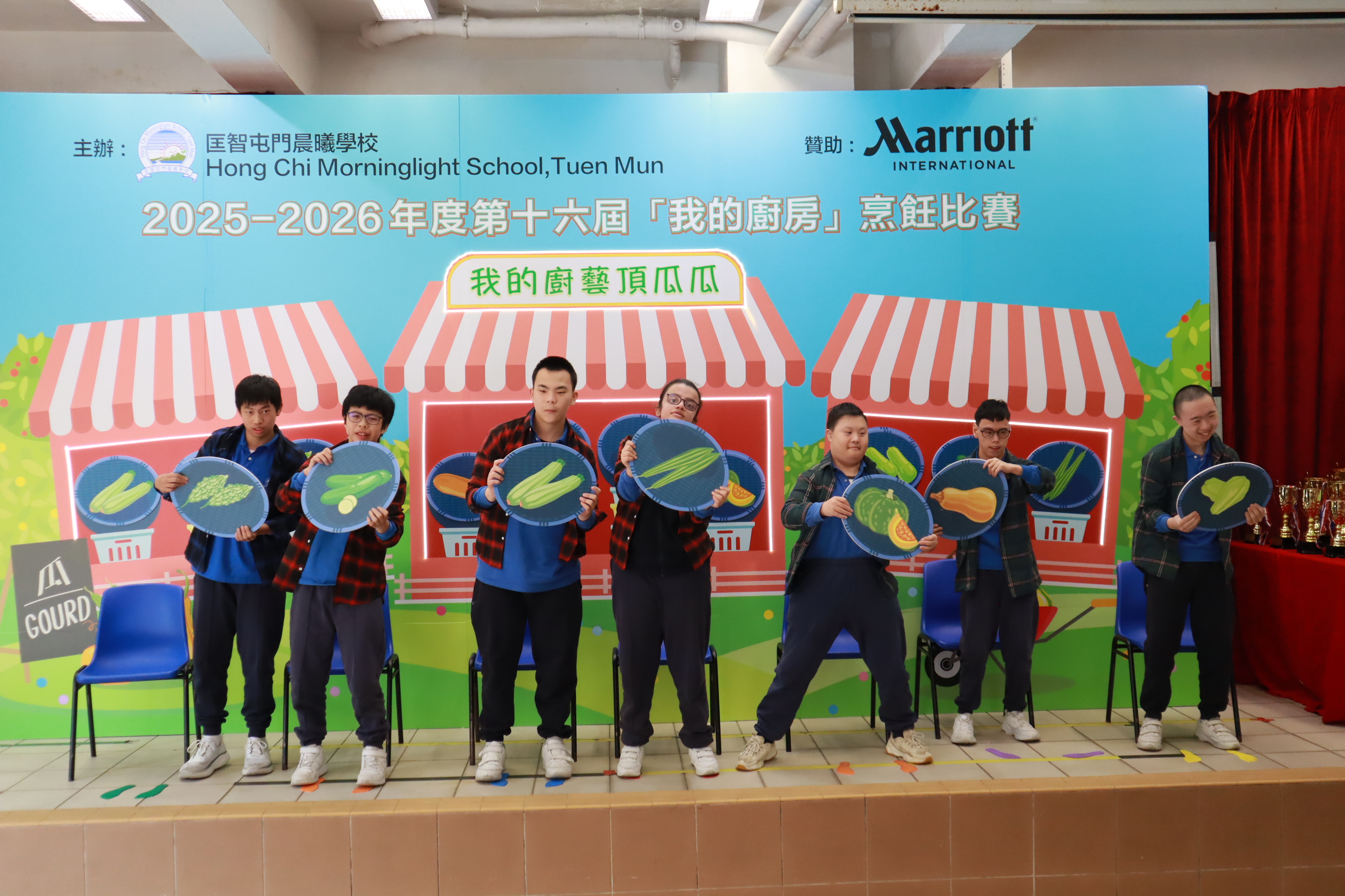 由匡智會屬校——匡智屯門晨曦學校主辦,萬豪國際集團香港區酒店贊助,第16屆「我的廚房」烹飪比賽於1月16日圓滿舉行。本屆比賽以「我的廚藝『頂瓜瓜』」為主題,瓜類種類繁多,而且蘊含豐富營養的食材,只要烹調得宜,即可煮出美味又健康的佳餚。猶如有不同特殊教育(SEN)需要的學生,只要施以悉心栽培,他們的才能也可以在體育、藝術、烹飪等多個範疇發光發亮。